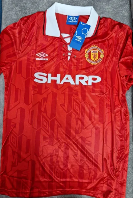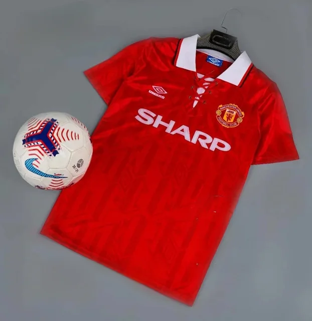 کیت قرمز منچستریونایتد ۱۹۹۲ SHARP با طراحی کلاسیک و کیفیت بالا، نمادی از دوران طلایی فوتبال است. این لباس رسمی با جزئیات دقیق و پارچه مقاوم، انتخابی بینظیر برای هواداران وفادار باشگاه منچستریونایتد میباشد که به تاریخچه باشگاه ارج مینهند.